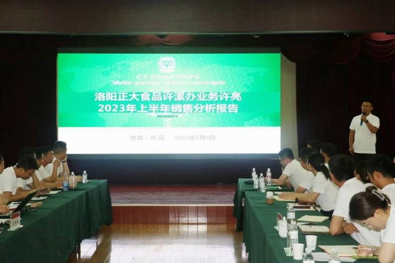 2023年7月8日,洛陽正大上半年工作總結(jié)會議在五樓會議室隆重召開,正大集團(tuán)河南區(qū)豬肉食品事業(yè)副總裁、洛陽正大食品有限公司總經(jīng)理沈道華、生產(chǎn)與行政外圍主管及全體銷售人員參加會議。