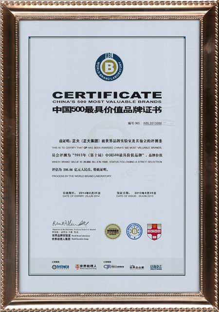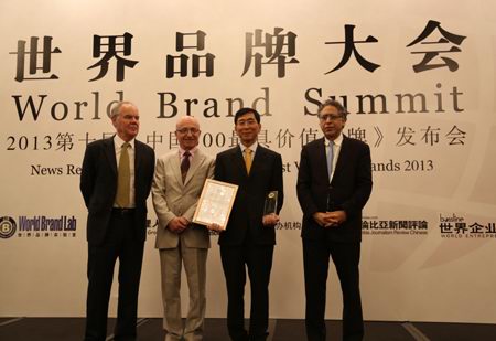 6月26日,由世界品牌實驗室、世界經理人雜志等機構主辦的世界品牌大會暨2013年第十屆《中國500***具價值品牌》發(fā)布會在北京東方君悅大酒店召開。會議發(fā)布了2013第十屆《中國500***具價值品牌》排行榜,正大集團以208.86億元的品牌價值位居第88位。美國耶魯大學管理學院萊維·多爾教授(右一)、法國歐洲工商管理學院瓊·克勞德·拉里齊教授(左二)以及英國牛津大學商學院斯蒂芬·沃格教授(左一)為正大集團頒獎。董事長辦公室(北京)楊海浩總裁(右二)代表集團接受獎杯及證書。