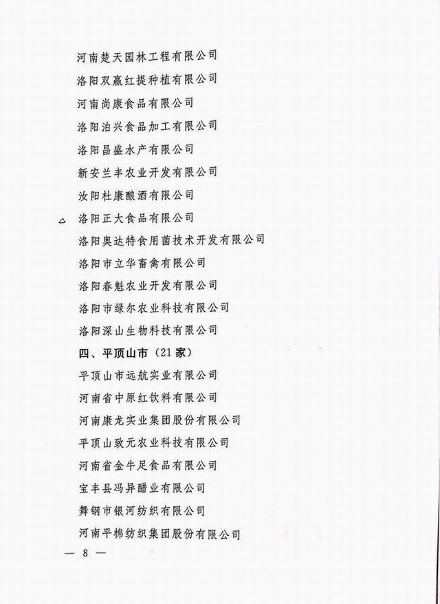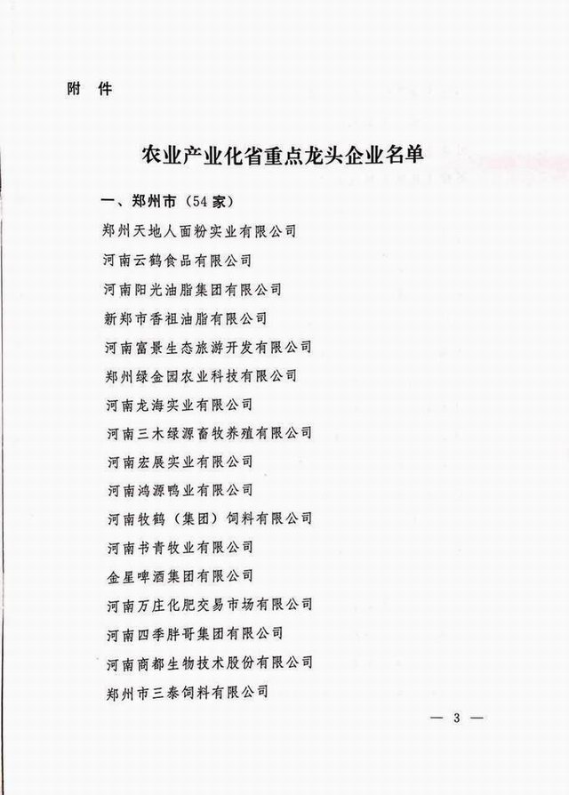 農(nóng)業(yè)產(chǎn)業(yè)化省重點龍頭企業(yè)2016.10.24 發(fā)布時間:2020-01-15來源:洛陽正大食品有限公司點擊:13760 上一篇:出口食品生產(chǎn)企業(yè)備案證明 下一篇:56.河南民營企業(yè)現(xiàn)代農(nóng)業(yè)100強